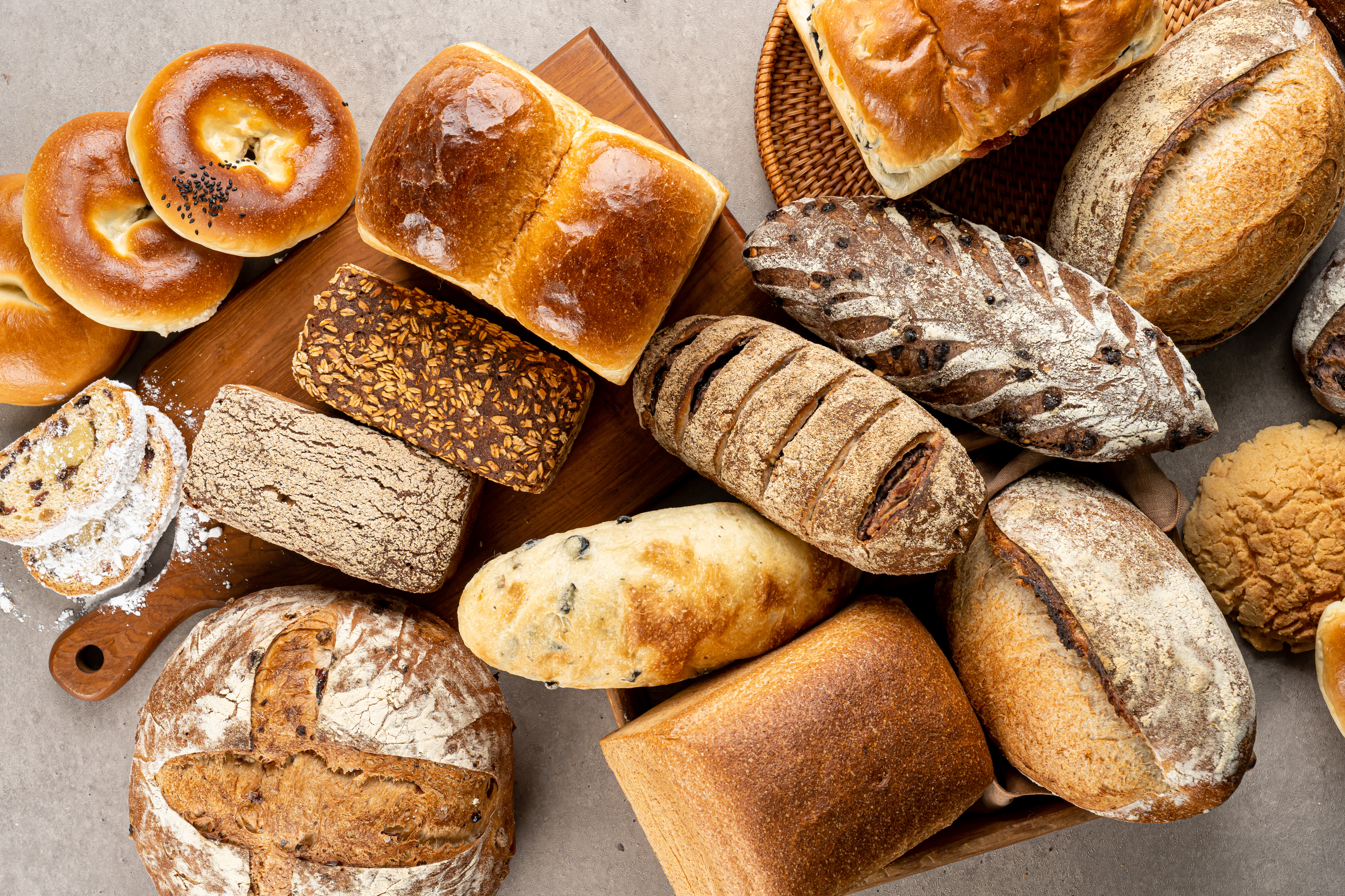 올리브 치아바타 4,800 | 100통밀식빵 1/2 5,000 | 100호밀 9,000 | 호밀그레인 1/2 8,000 | 홍차레몬마들렌 3,200 | 무화과 깜빠뉴 7,500 | 50% 통밀빵 6,000 | 올리브 치즈식빵 6,800 | 컨츄리빵 1/2 5,500 | 플레인 베이글 4,000 | 파송송 베이글 5,200