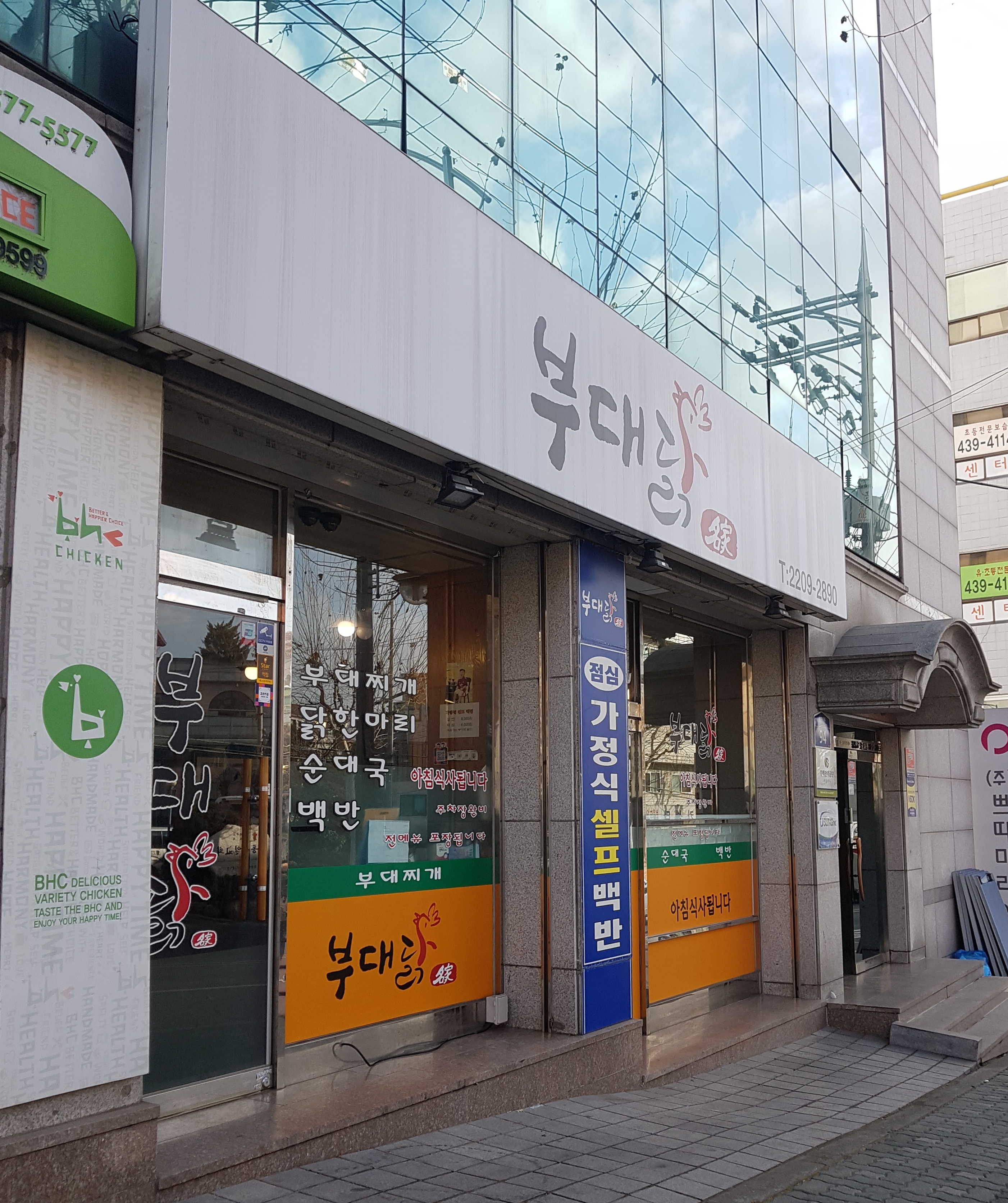 부대찌개 or 볶음 (2인) 16,000 | 닭요리 (2인) 24,000 | 닭요리 (3인) 35,000 | 닭요리 (4인) 45,000 | 돼지국밥 8,000 | 점심 백반 7,000 | 초계국수, 물비빔국수 10,000