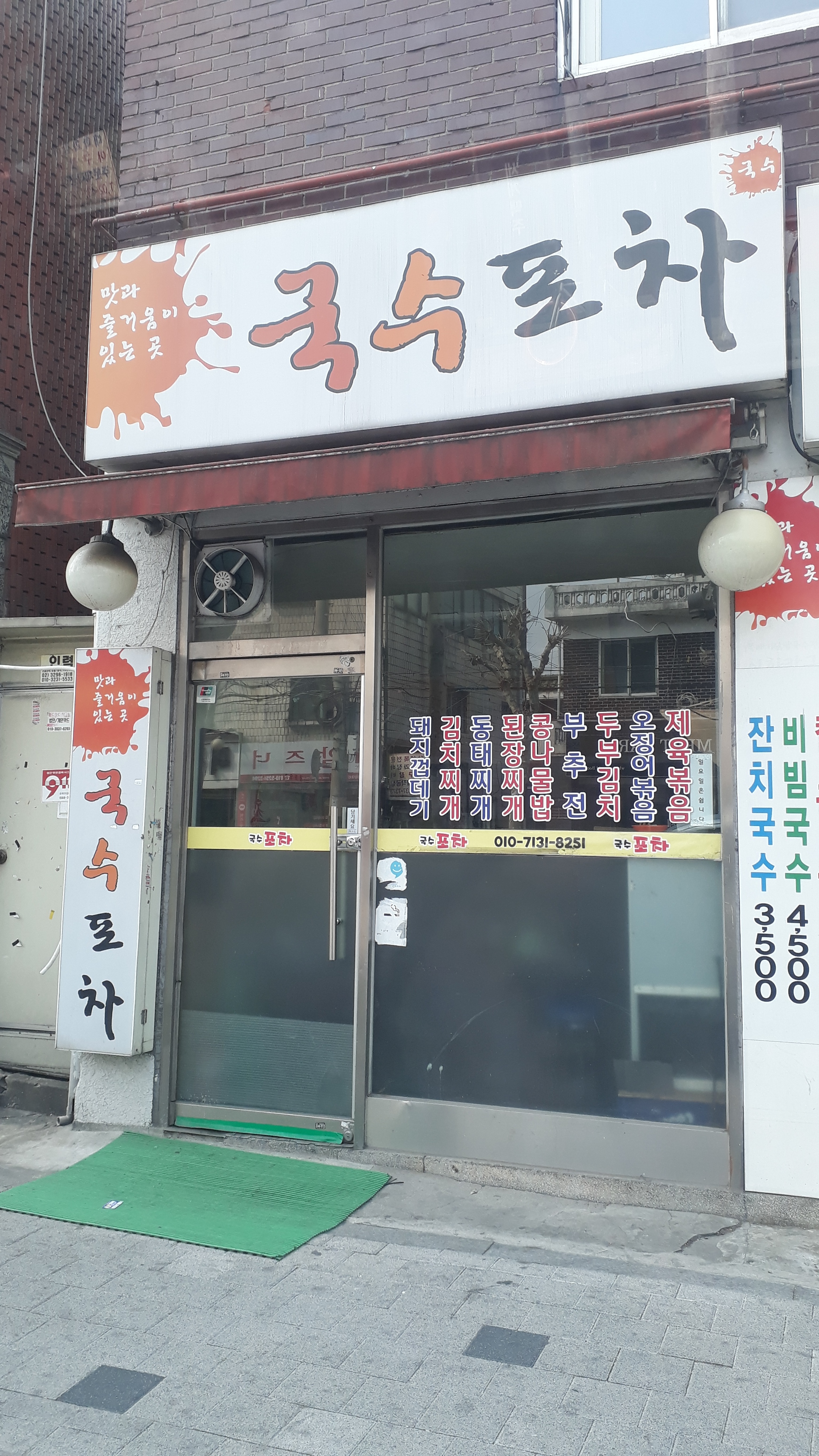 잔치국수 3,500 | 비빔국수 4,500 | 칼국수 4,000